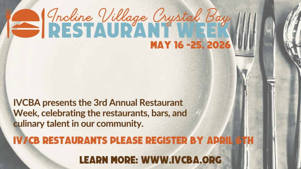 We’ll be sharing participating spots soon. In the meantime, save the date and get ready to enjoy dining out at our great restaurants around Incline Village and Crystal Bay.