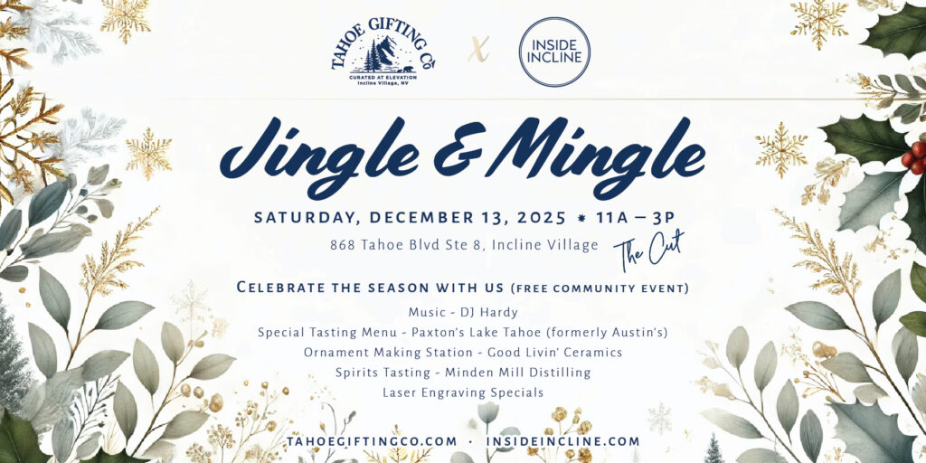 As Tahoe Boulevard glows with lights and the holiday season settles in, we invite you to wander, explore, and connect. Jingle & Mingle is a celebration of everything that makes Incline Village special, our small businesses, our creative community, and the neighbors who bring it all to life.