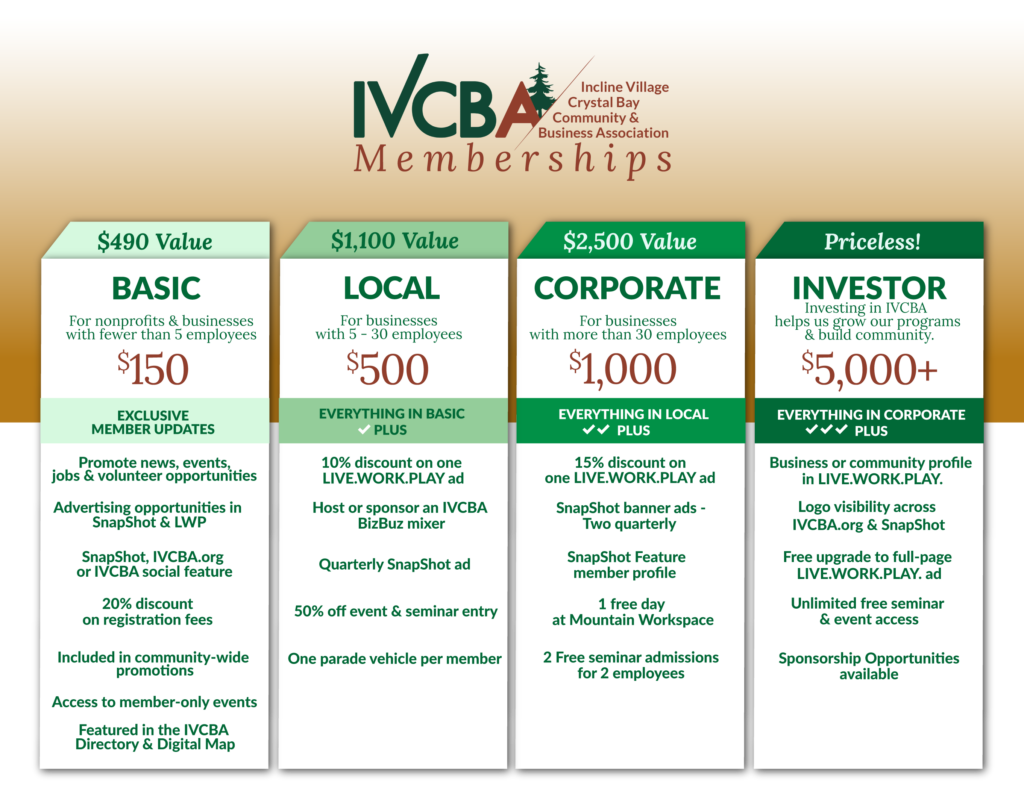 IVCBA is the community and business association dedicated to building community and growing cohesiveness for the sustainability of Incline Village and Crystal Bay, Nevada.